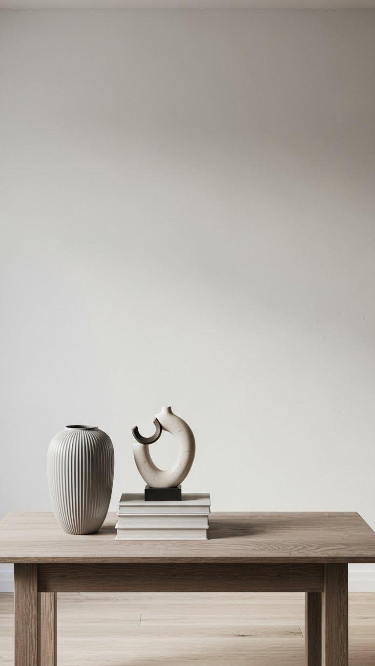 Choose a small focal vignette — a vase, a book, a sculptural object — and let empty space around it feel like freedom, calm, and purpose.