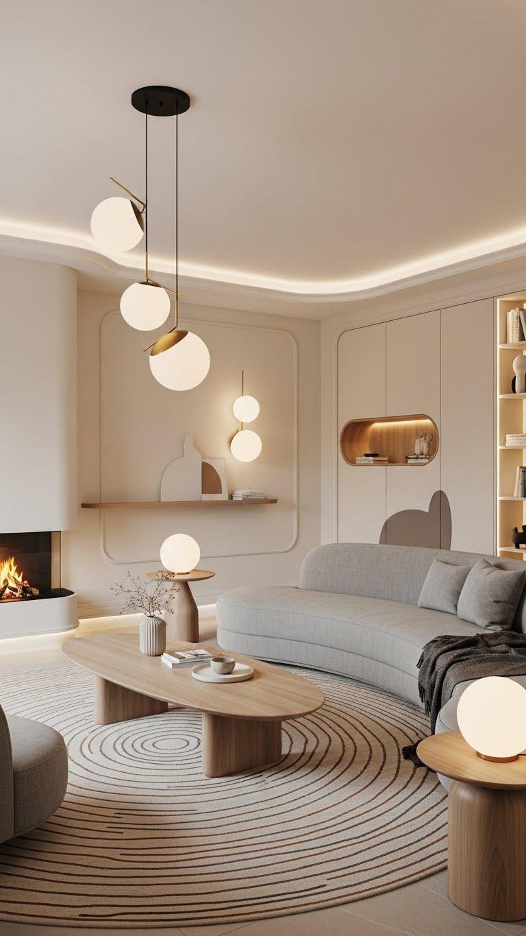 If you want to soften a room’s sharp angles, introduce rounded forms—curved sofas, circular rugs, and oval coffee tables instantly calm a space and guide the eye. Choose curved molding to blur edges, pick rounded lighting fixtures to create gentle pools of glow, and favor soft-edged storage.