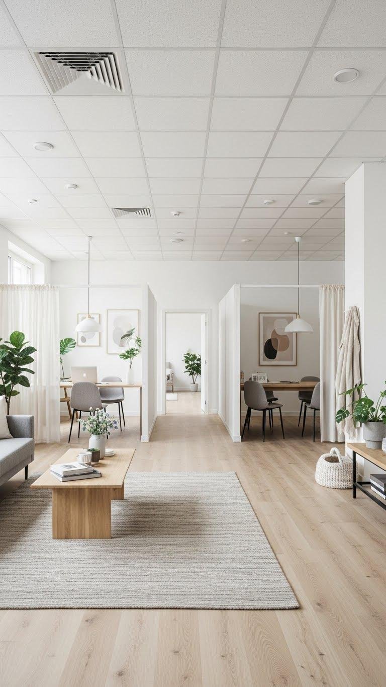 1 simple rug or a low-profile divider can instantly organize an open room without breaking the clean aesthetic.