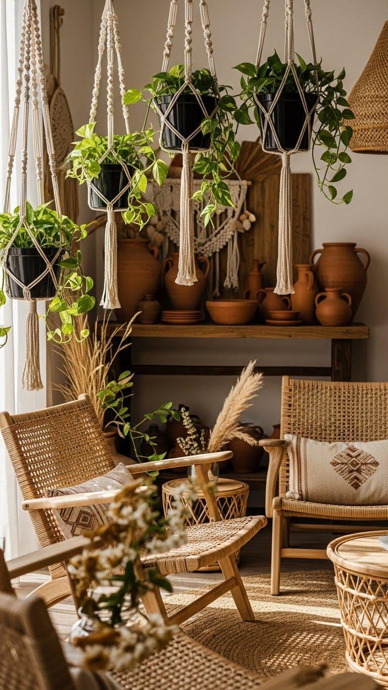Earthy Bohemian: Rattan, Macramé, and Terracotta
