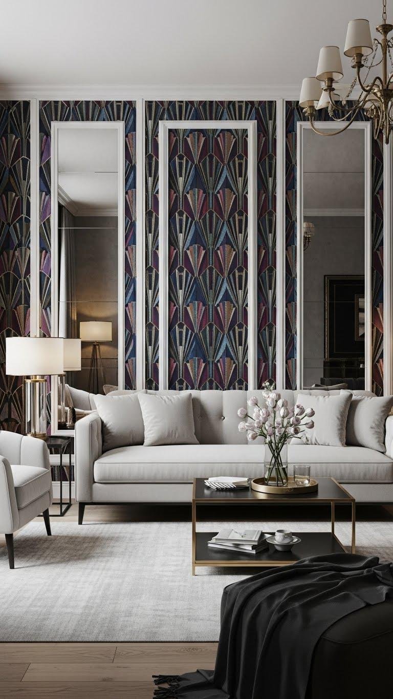 A bold Art Deco accent wall instantly anchors a room, giving you a touch of 1920s glamour without sacrificing modern comfort.