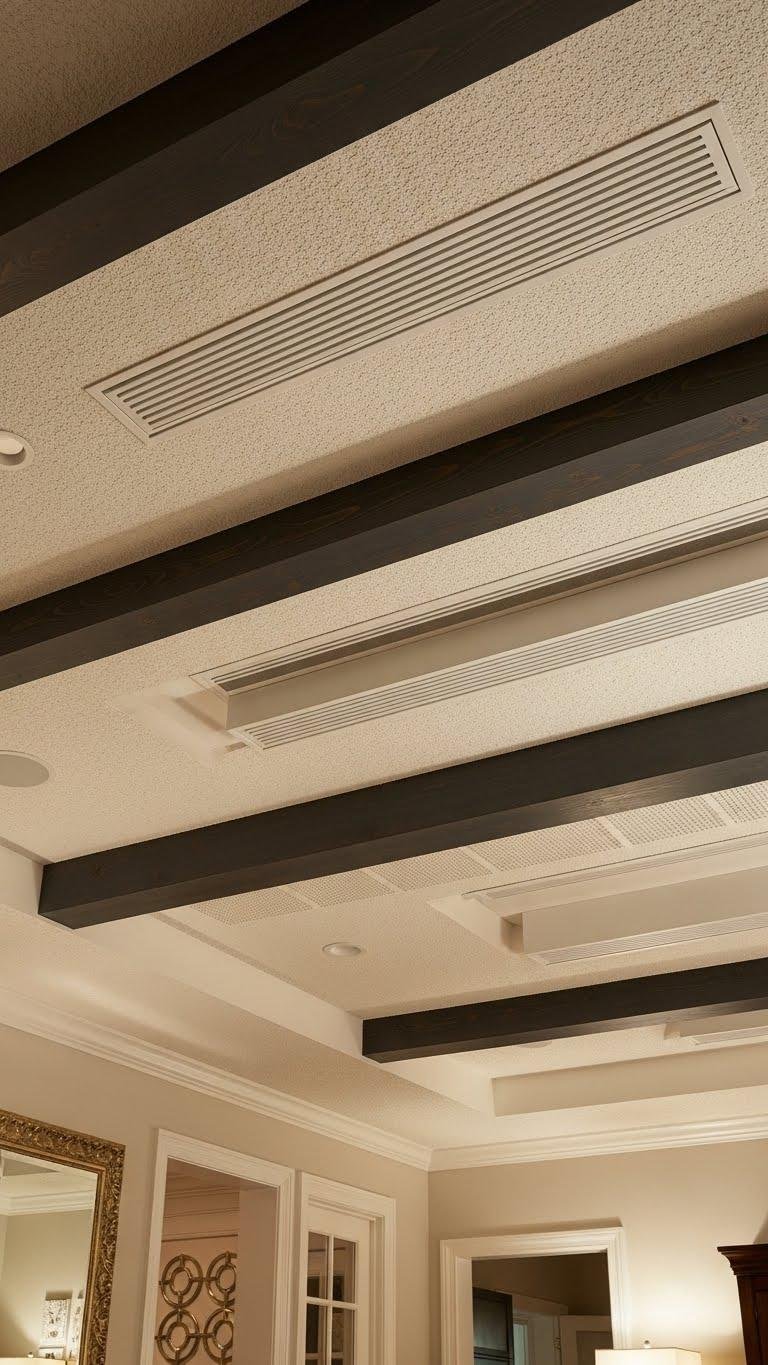 You can choose stippled plaster for soft, tactile charm or mix painted beams with modern acoustic panels for quiet comfort.