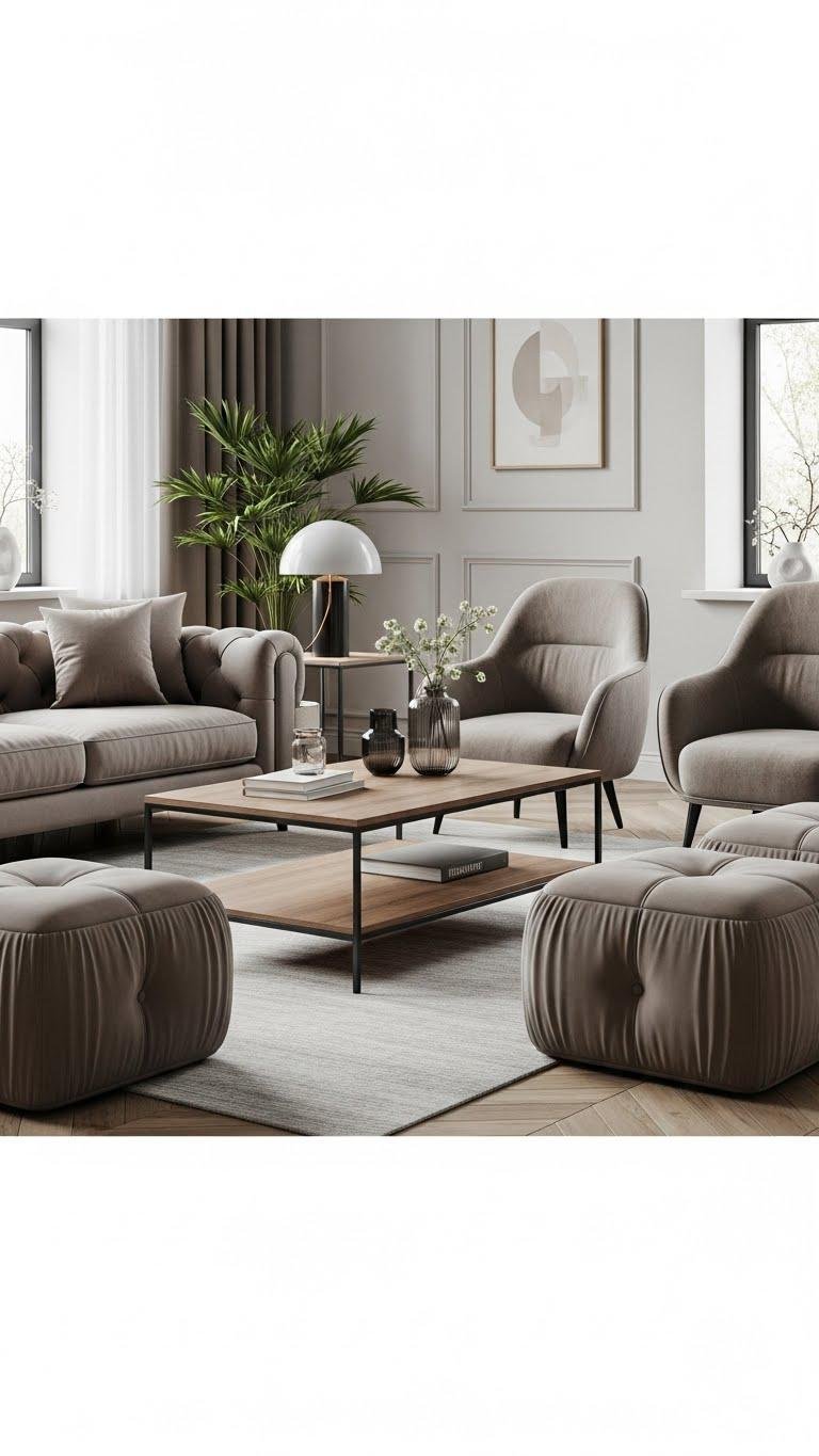 Often you’ll find that a simple, minimalist coffee table anchors plush seating without competing for attention; choose low-profile shapes, warm wood or matte metal finishes, and keep the tabletop clutter-free so your sofas and armchairs read as the room’s soft focal point.