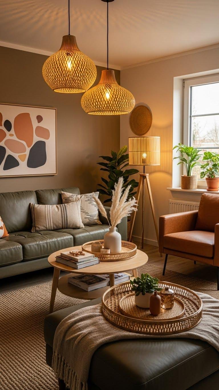 Embrace bamboo accessories—light, textured lamps and woven trays—that add earthy rhythm.