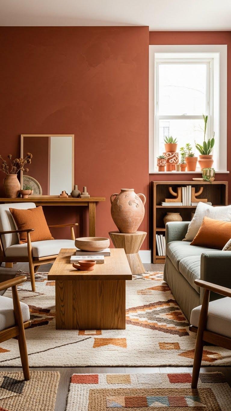 Paint an accent wall, add woven rugs, and pick wooden furniture with warm grains. You’ll create a calm, liberated room that feels intentional and easy to live in.