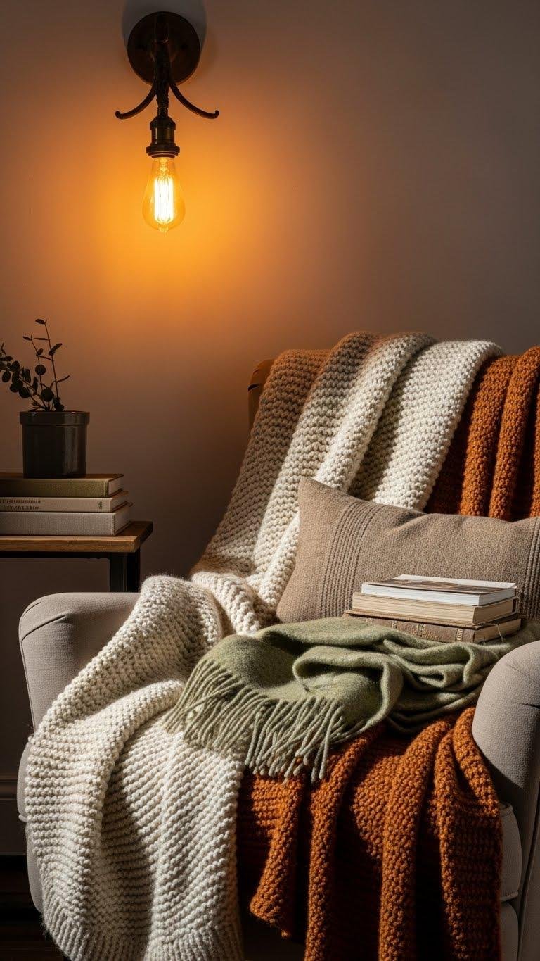 You’ll embrace plush layering for comfort and style, stagger cushions for depth, and keep a simple throw rotation so colors and weight change with mood, season, and spontaneous lounging.