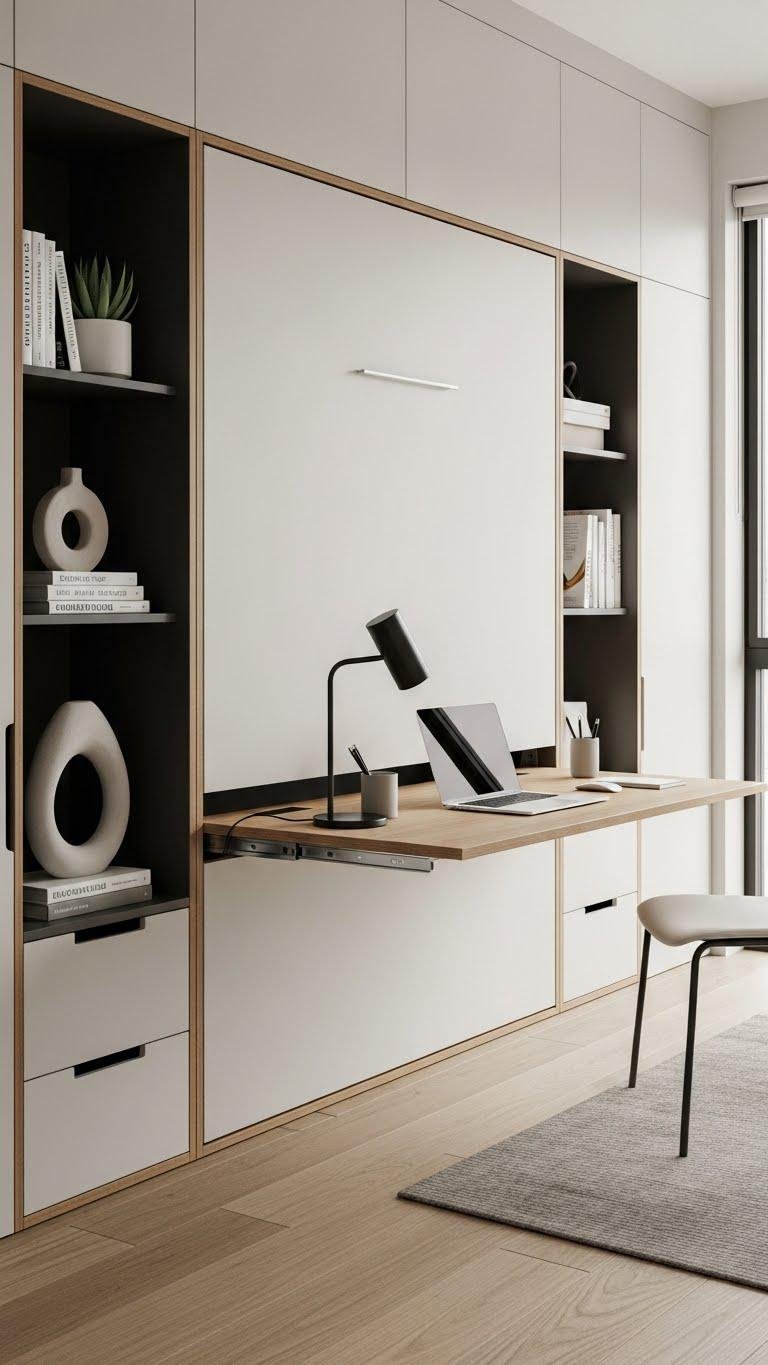 Fold away bulky furniture and reclaim floor space with smart solutions like Murphy beds—clever, minimalist pieces that turn sleeping areas into multifunctional rooms without sacrificing style.
