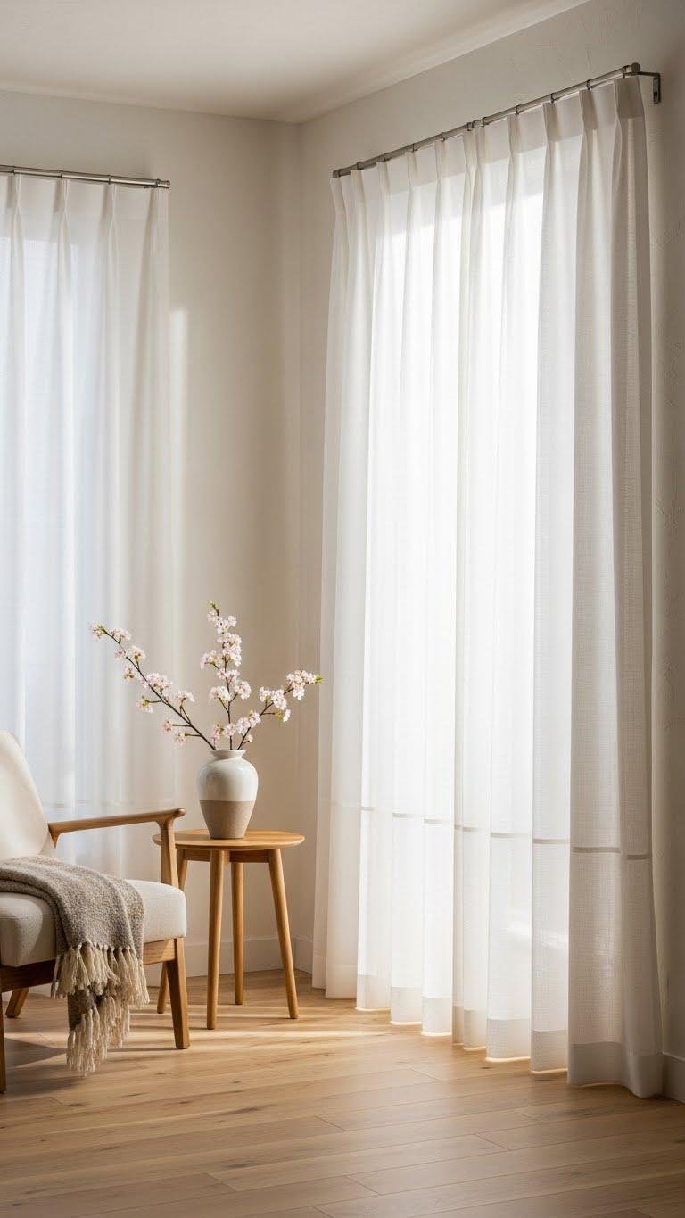 White drapes bounce natural light, expand sightlines, and support a minimalist, free lifestyle. Keep hardware simple and hems clean so your space breathes and still feels grounded.