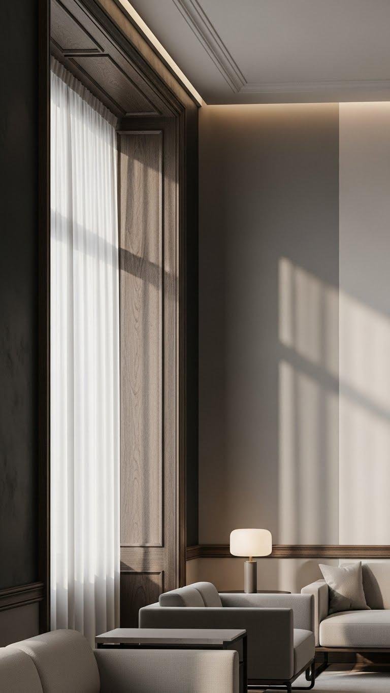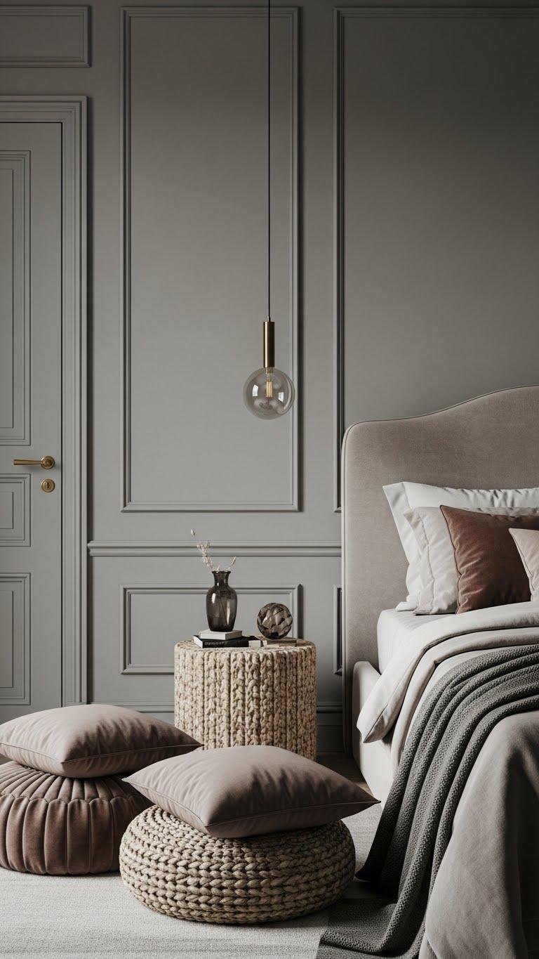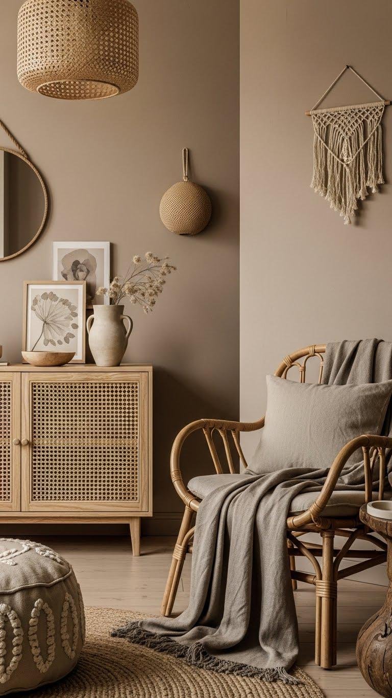 When you choose warm-neutral paints—think greige, soft taupe, or creamy mushroom—you anchor the room in a cocooning base that flatters wood tones and natural textiles.