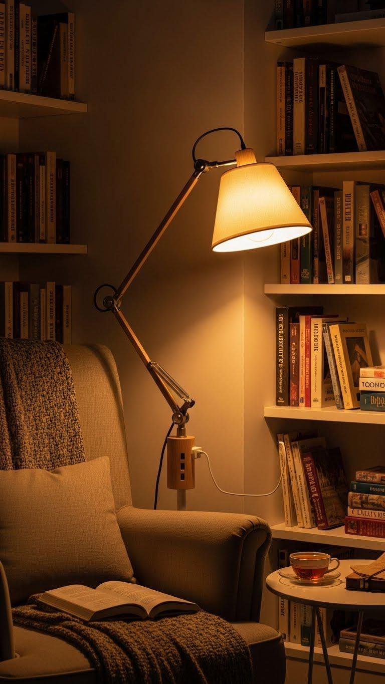 Warm ambient light sets the mood, but task lamps give you the focused beam a reading nook needs.