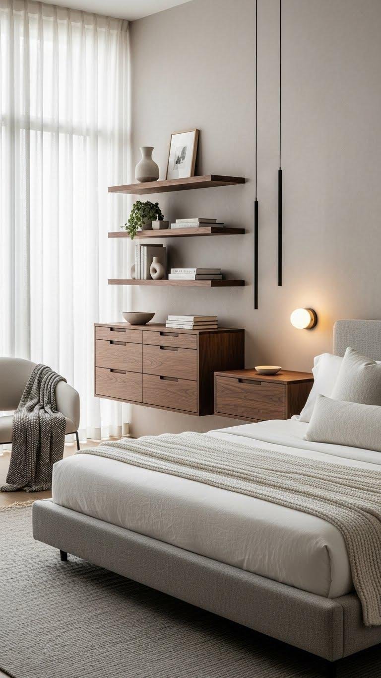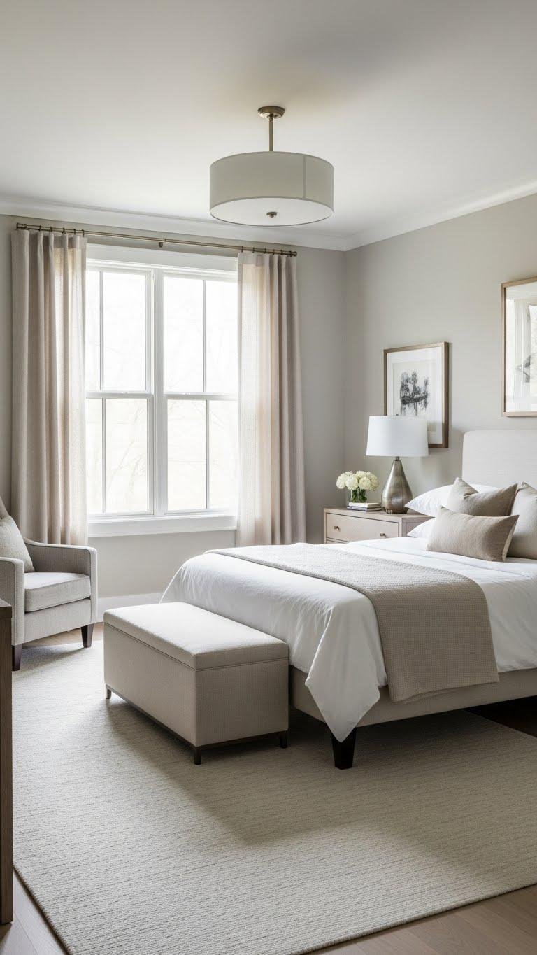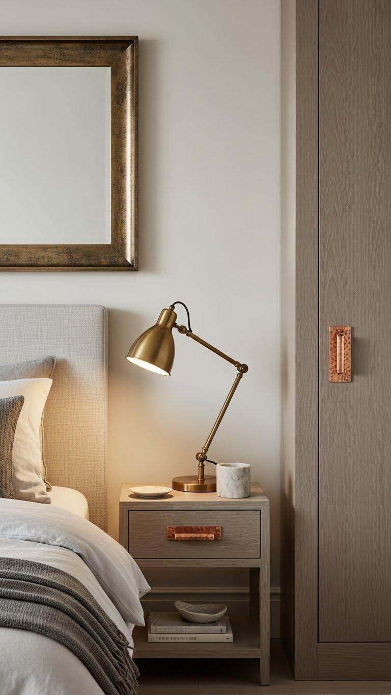 If you want your neutral bedroom to read as intentional rather than accidental, align metal tones and finishes across key pieces—drawer pulls, bedside lamps, curtain rods, and switch plates—to create a quiet visual thread.