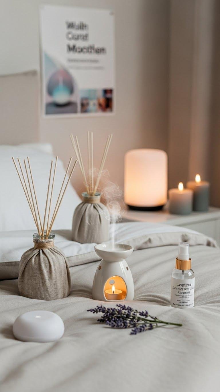 Choose low-profile aromatherapy diffusers and mute-tone candles, pair with curated ambient playlists, and let scent and sound quietly define your calm.