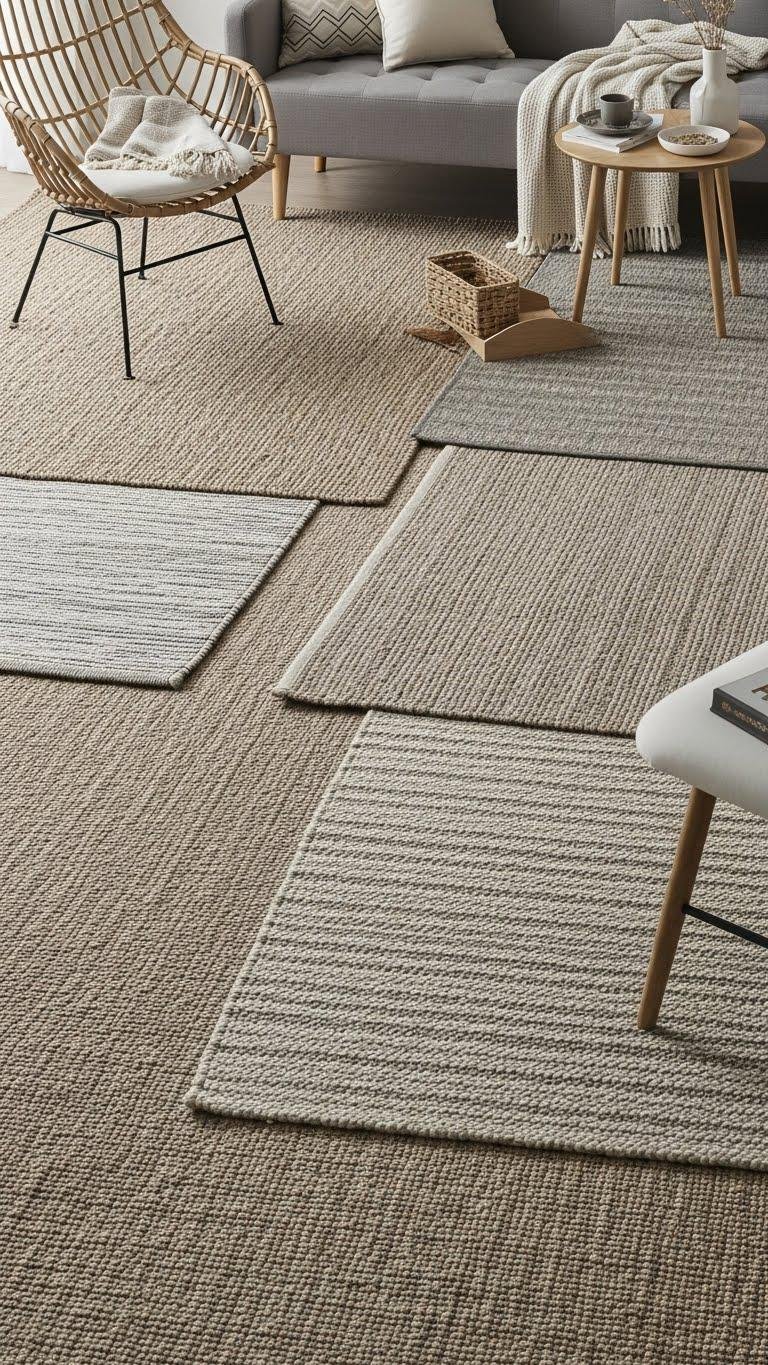 Layering rugs brings instant warmth and visual depth to a neutral room, letting you anchor furniture while adding subtle pattern and texture without overwhelming the palette.