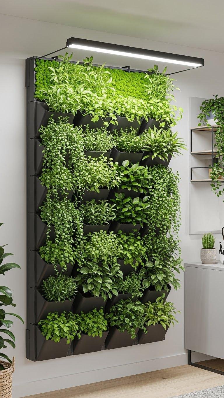 You’ll choose modular vertical herbbeds for cooking herbs, trailing vines for movement, and moss panels for calming green backdrops.