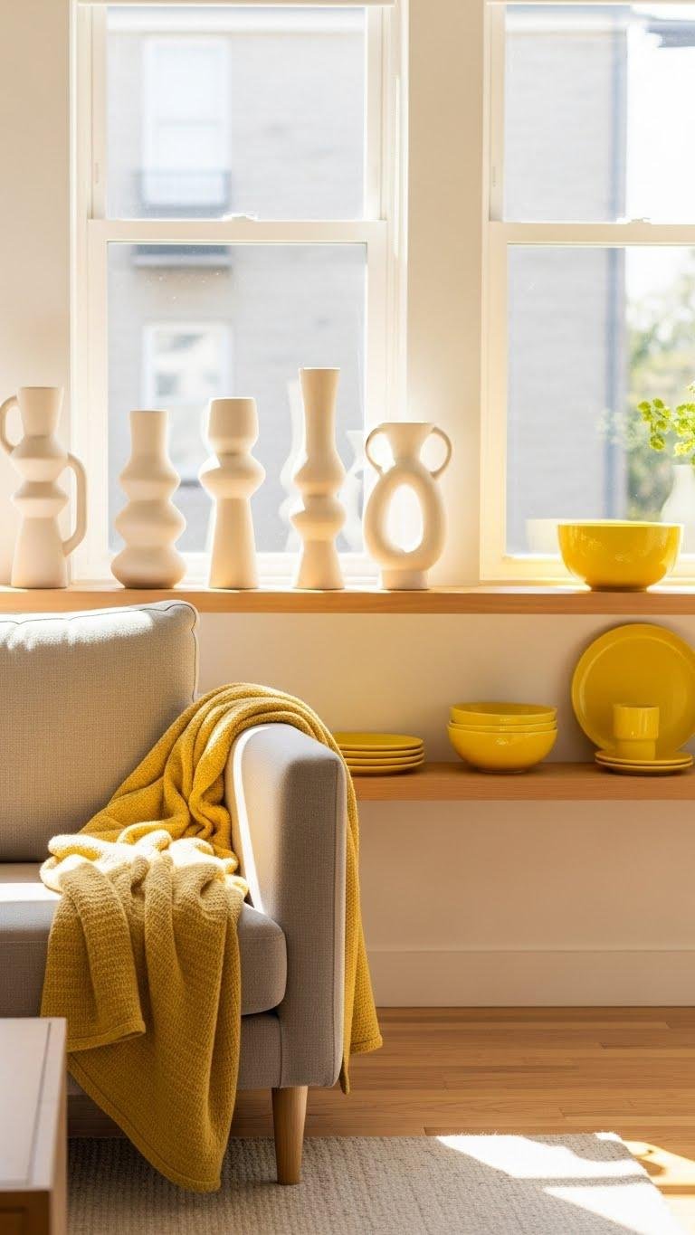 A few butter yellow accents can brighten a room without overpowering it, giving your spring palette a warm, sunny edge. You’ll lean into confidence: toss a butter yellow accents throw over a neutral sofa, add sculptural vases, or display lemon curd ceramics on open shelves.