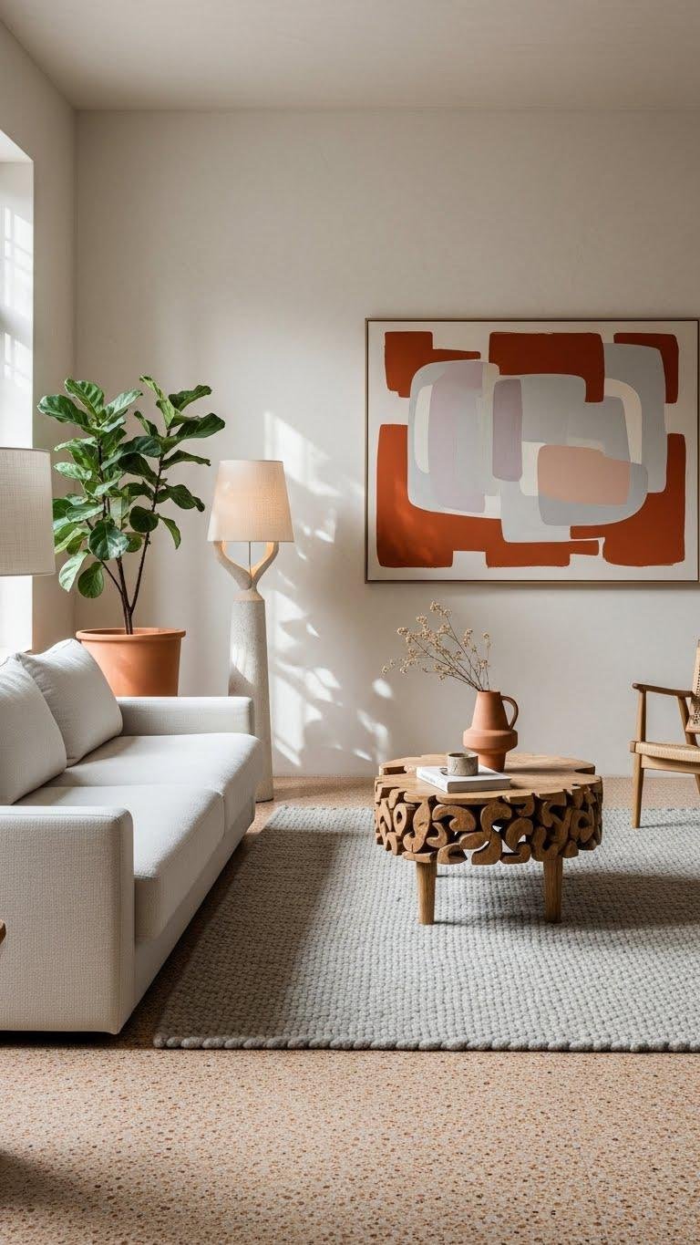 Bring in a terracotta or burnt sienna accent chair to warm up a neutral scheme and anchor a cozy conversation nook. Choose a piece with clean lines and tactile fabric so you feel liberated, not weighed down.