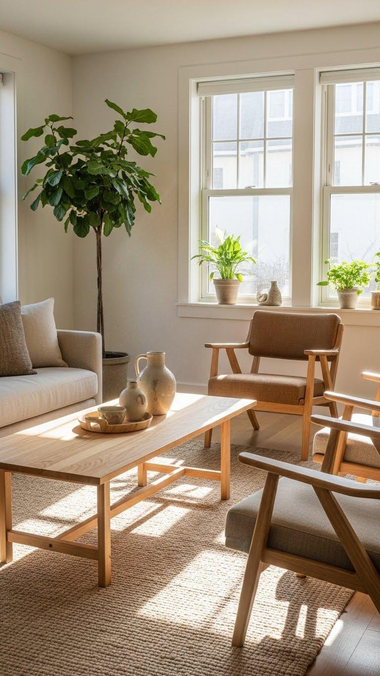 Combine varied textures—linen, woven rattan, matte ceramics—to keep the room airy, grounded, and effortlessly free.