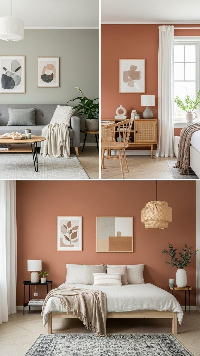Across adjoining rooms, repeat two or three core earth shades to create a calm, cohesive flow that feels intentional rather than matchy.