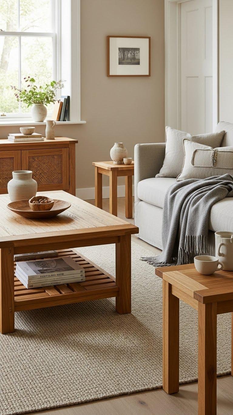 Pull in honey-toned wood furniture to warm a room and ground lighter palettes without overwhelming them.