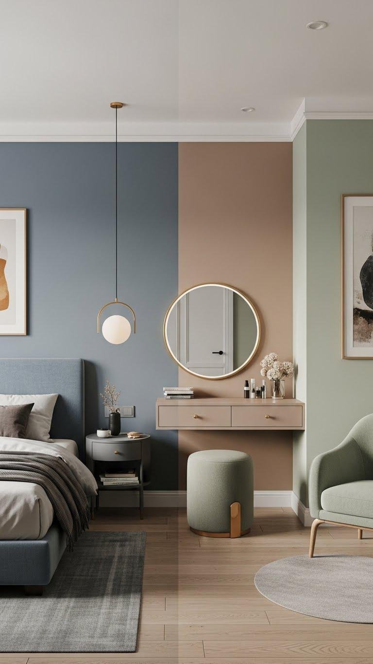 When you divide your bedroom into simple color zones—sleep, dressing, and lounging—you create calm without clutter.