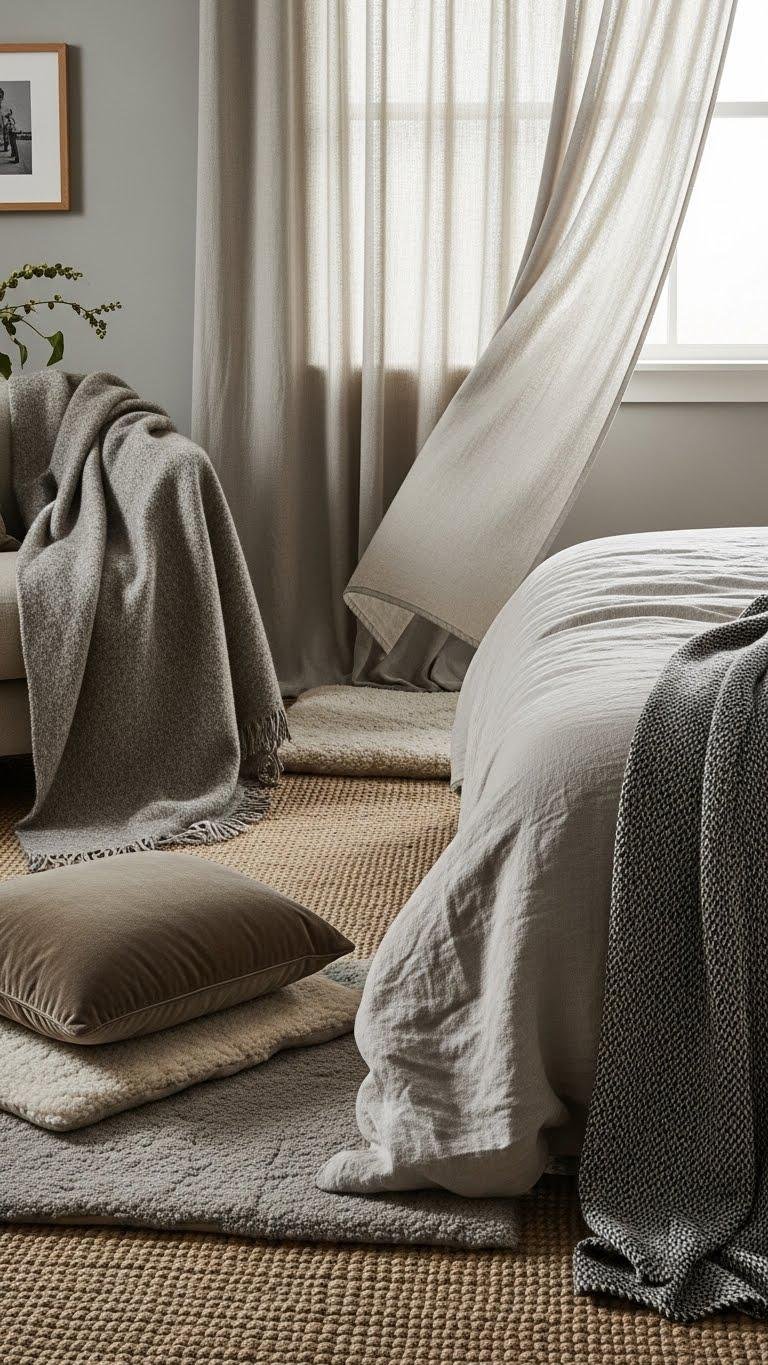 If you layer tactile materials—think nubby wool throws, linen curtains, and a low-pile jute rug—you’ll turn the muted palette into a room that feels lived-in and warm.
