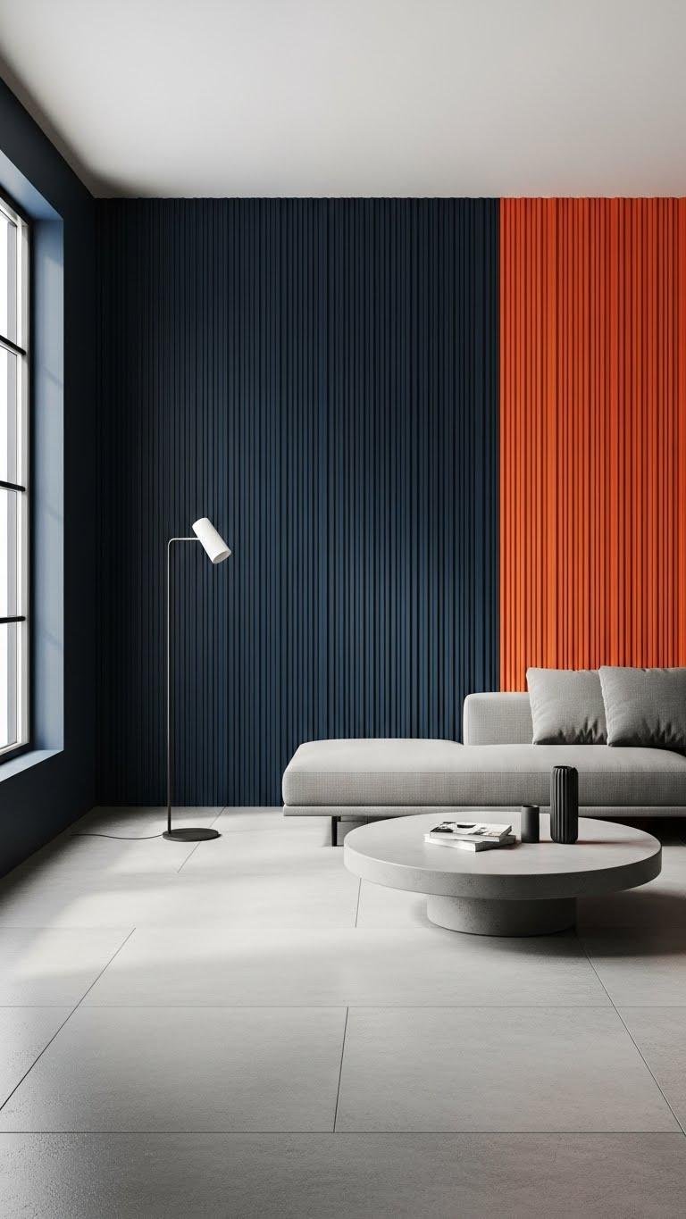 After working bold grooved paneling into your space, carry that graphic energy onto the floor and flat walls with striped accents—rugs, runners, or painted bands that echo the paneling’s rhythm and scale.