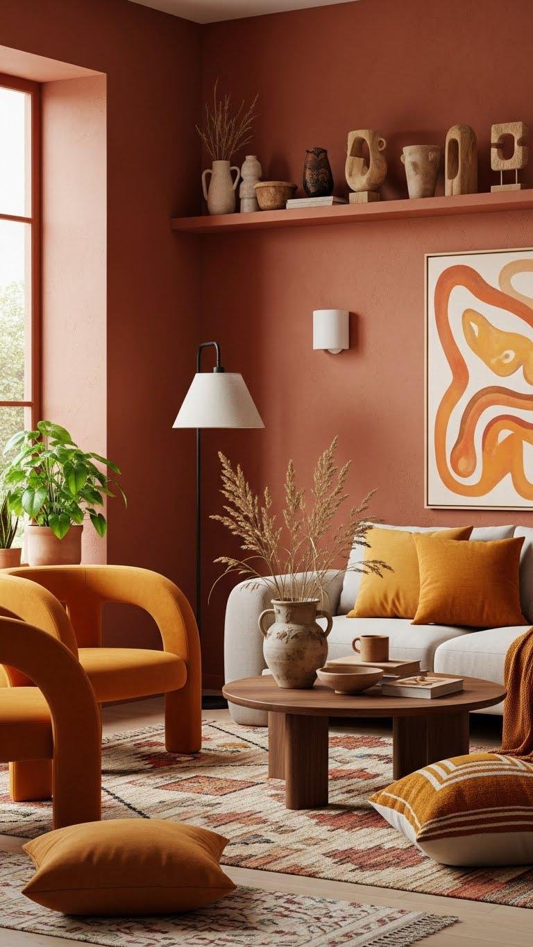 You choose terra cotta walls or ochre amber accents to anchor spaces without confining them. Pair bold, liberated furniture silhouettes and simple lighting to let those hues breathe. You’ll feel steadiness that still invites movement, openness, and effortless personal expression throughout your home.
