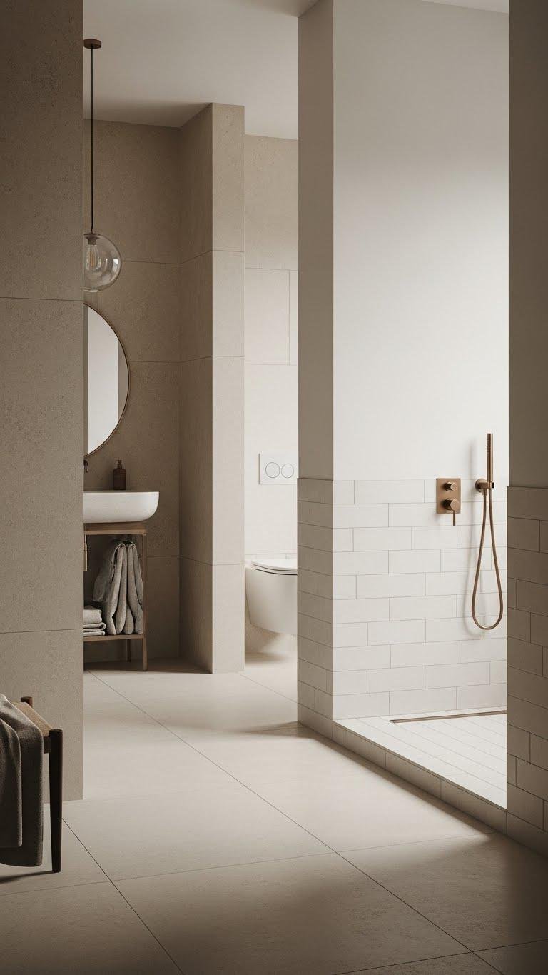 Use porcelain for wet zones and limestone for warm expanses; keep grout minimal, edges crisp, and finishes muted so your rooms feel open, grounded, and effortlessly free.