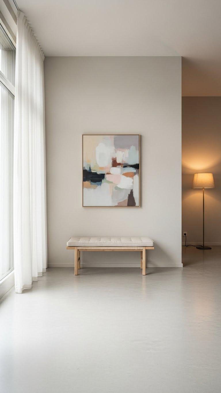 You embrace wide breathing, placing art or furniture with deliberate gaps and an empty foreground so movement feels free. The restraint highlights essentials, invites clarity, and gives you space to live without excess.