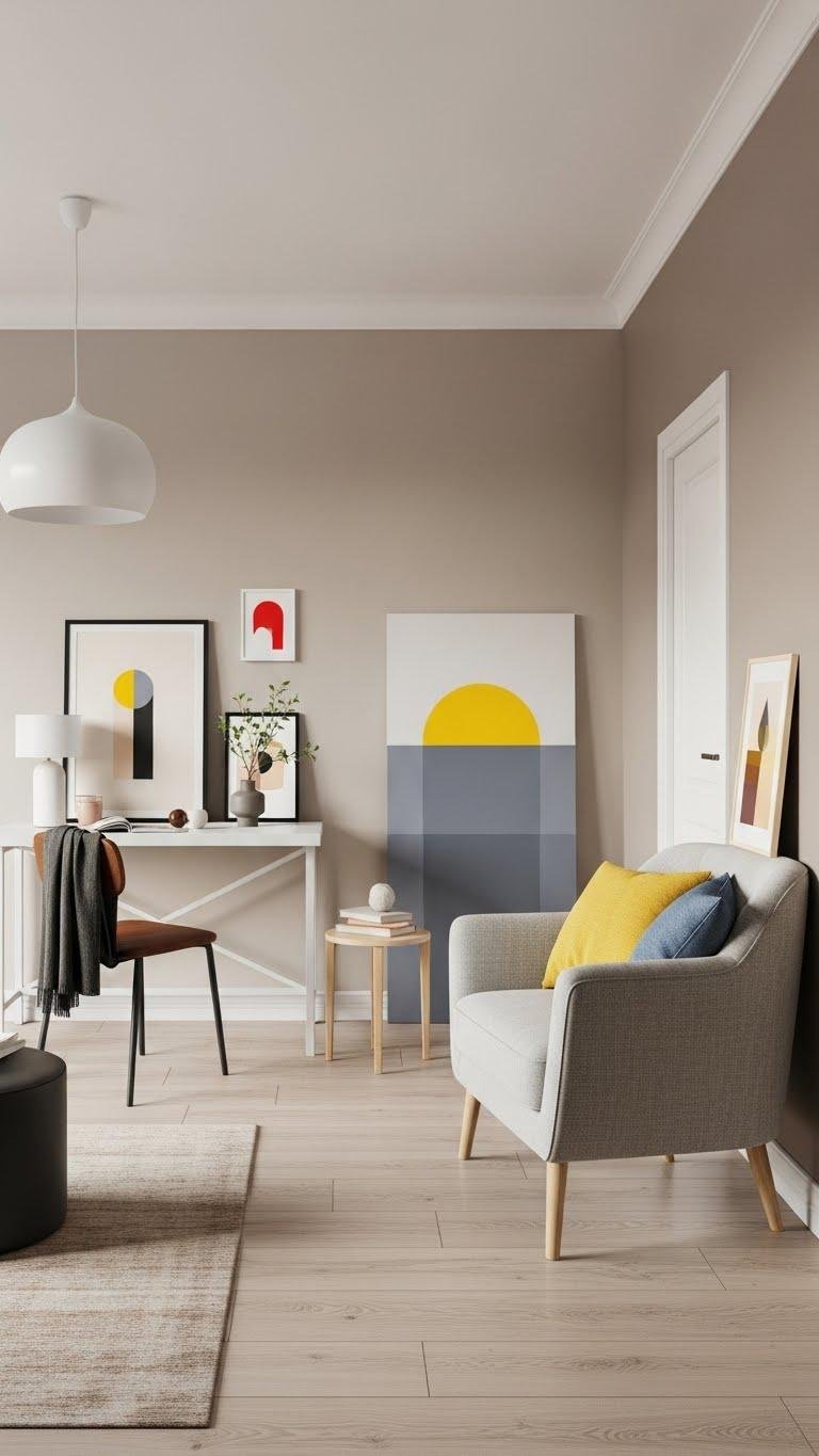 Pick a single, carefully chosen artwork and let it anchor the room — a dominant wall becomes your statement without crowding the space.