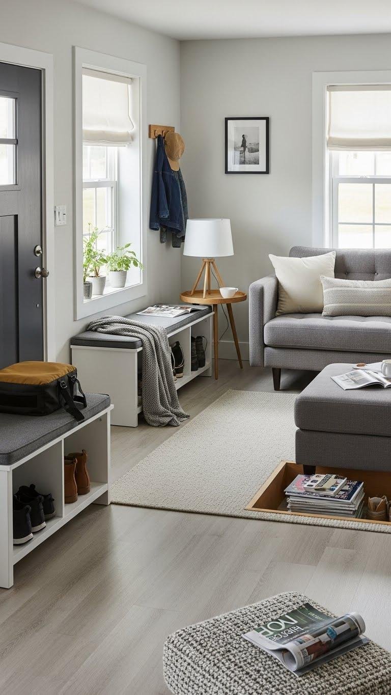 You’ll welcome a hidden bench by the entry to stash shoes and gear, and a recessed ottoman under a window for blankets and magazines. These choices clear tabletops, simplify routines, and let you move freely through a tidy, intentional space that feels open and effortless.