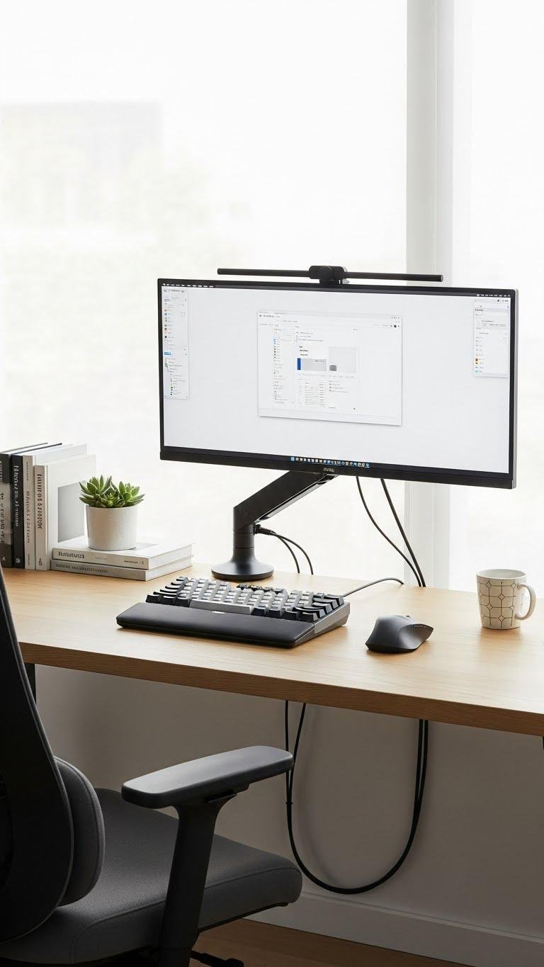 Choose an adjustable monitor arm for clean sightlines, a contoured keyboard that keeps your wrists happy, and discreet lumbar support that lets you move freely.