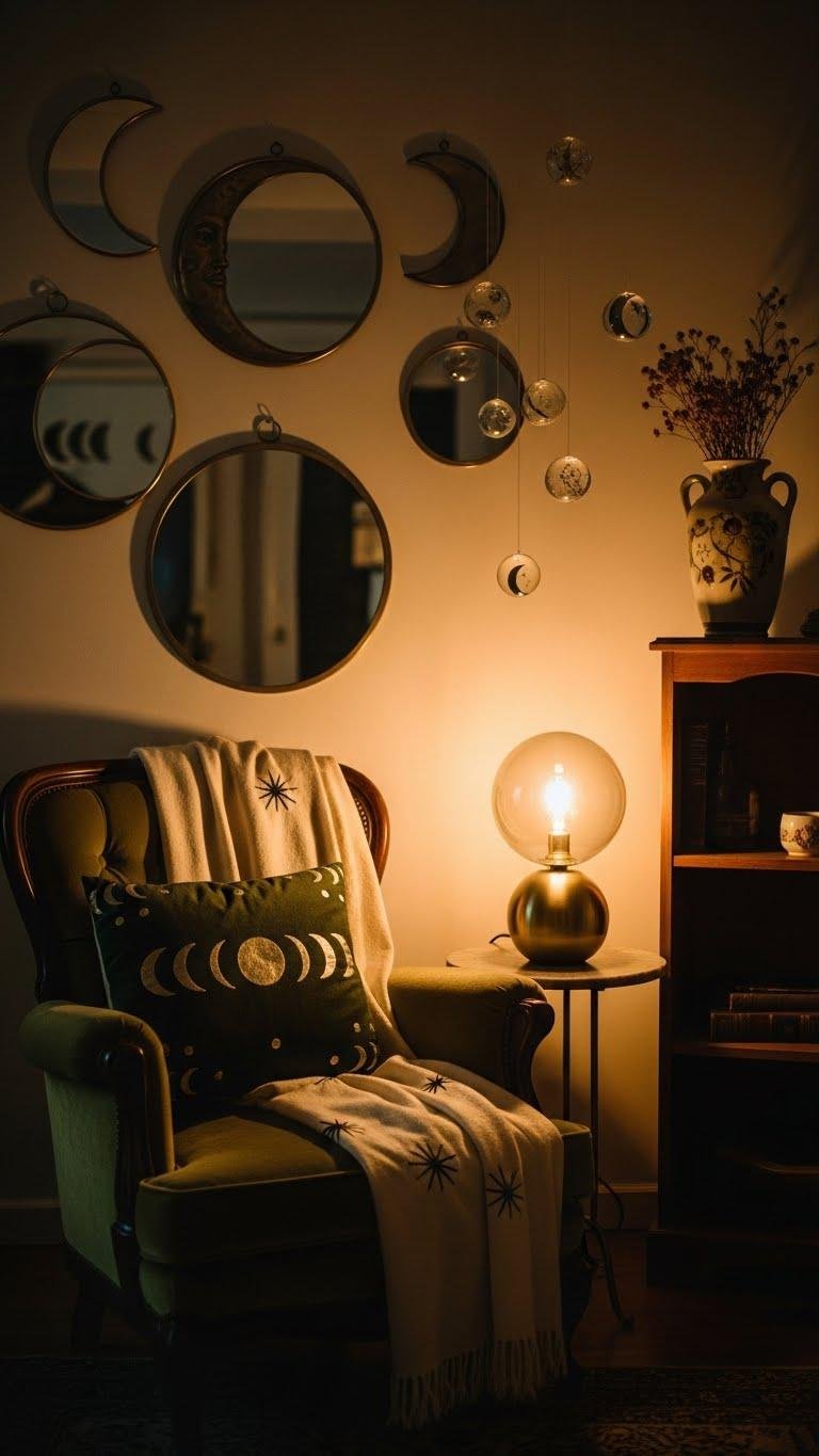 You’ll layer celestial orbs, mirror moons, and subtle lunar motifs to free your space — bold, airy, effortlessly mystical.