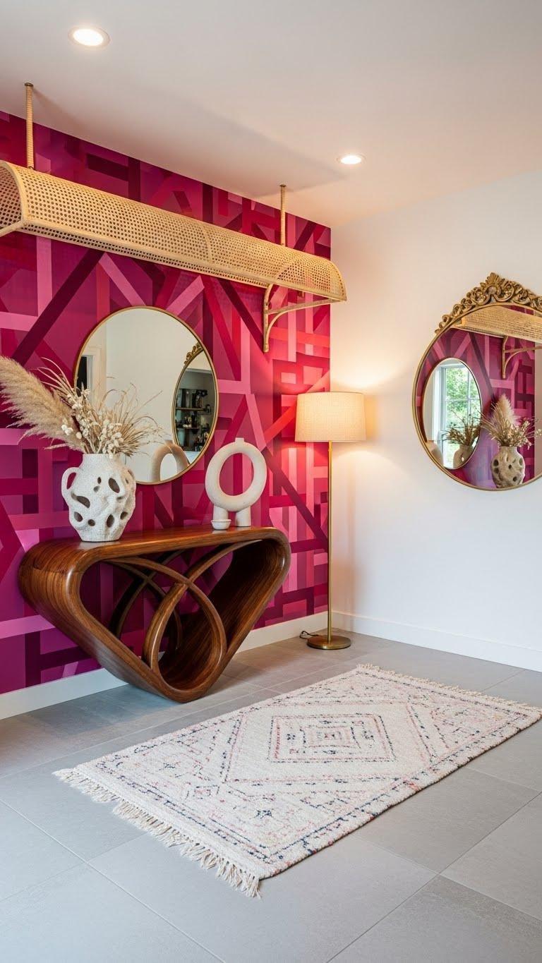 After the bold Fuchsia Geometry wall makes its mark, carry that same confident language into your entryway to set the tone from the moment guests arrive.