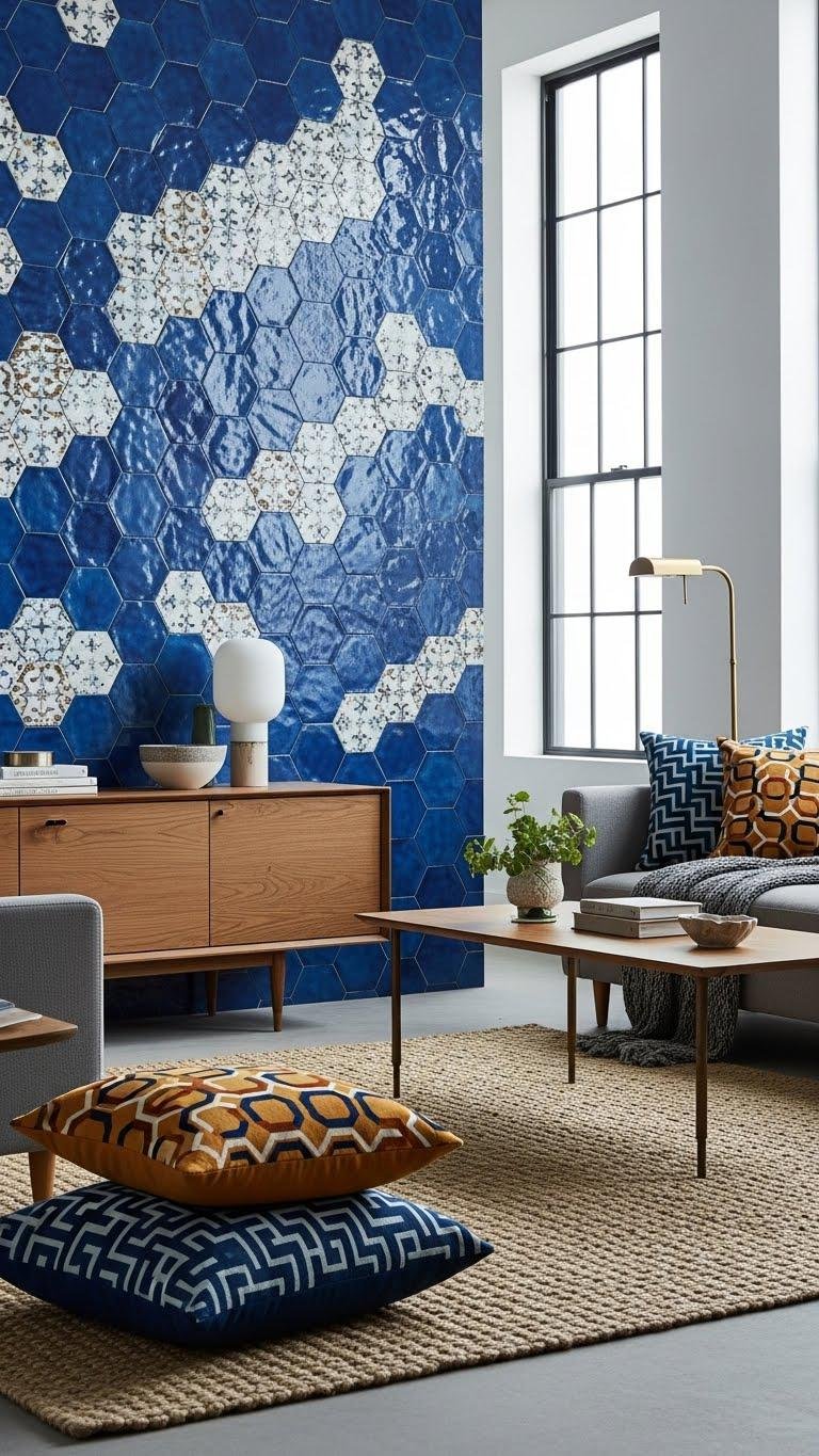 Blue Ceramic Tile Accent Wall