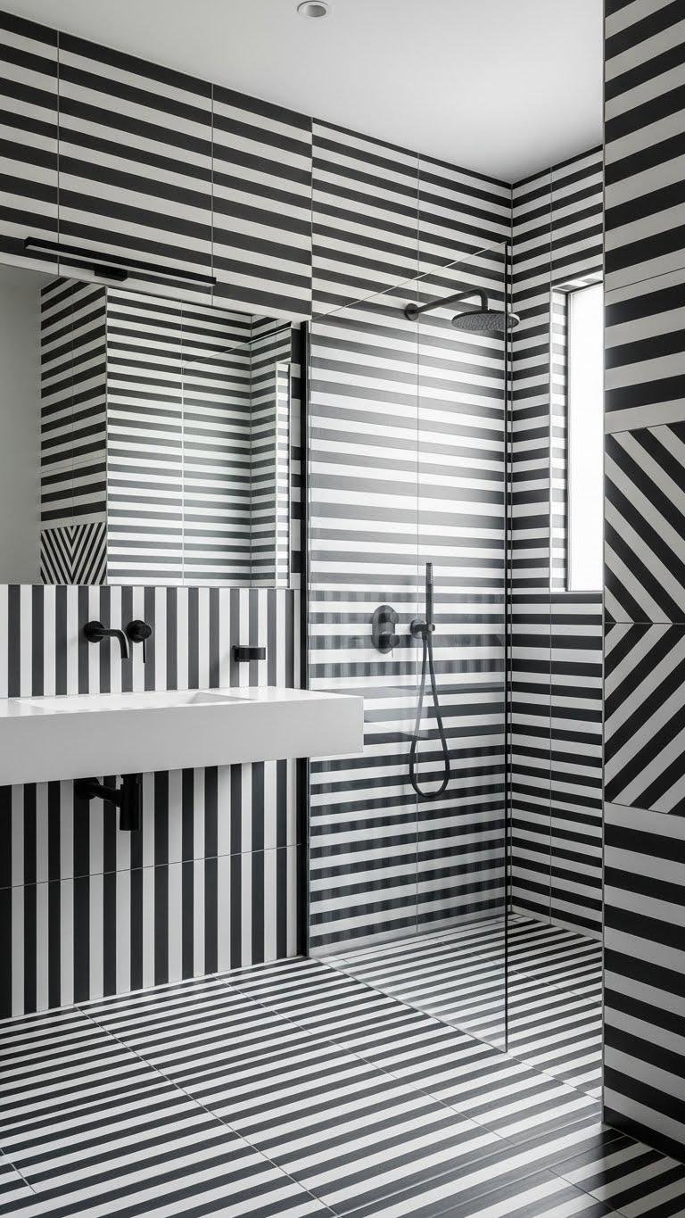 Striped Tile Bath Statement