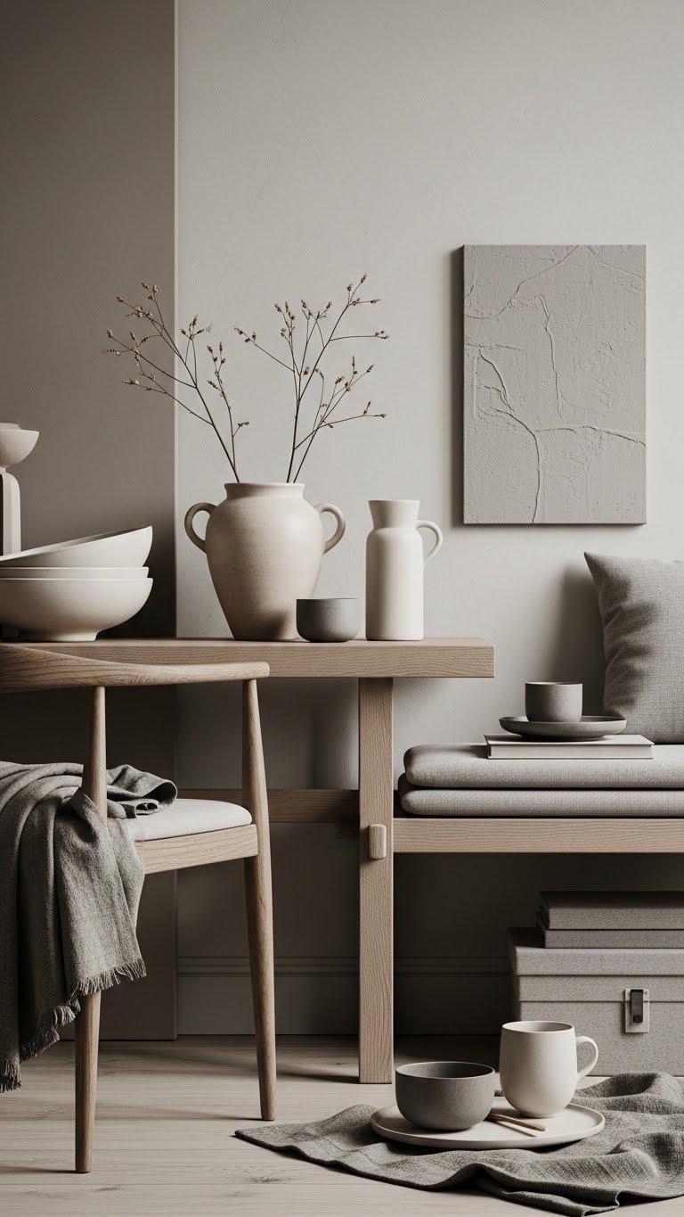 When you choose a neutral, muted palette, you let texture and form take center stage—soft beiges, warm grays, and off-whites create a calm backdrop that highlights natural wood, matte ceramics, and simple silhouettes.