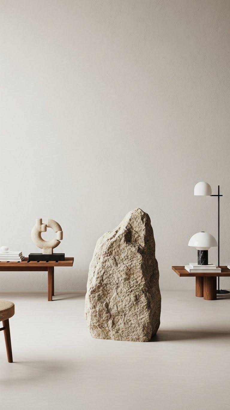 Stone anchors the room, but empty spaces give it air; you’ll want to balance negative space with carefully chosen, purposeful pieces so each element can breathe.
