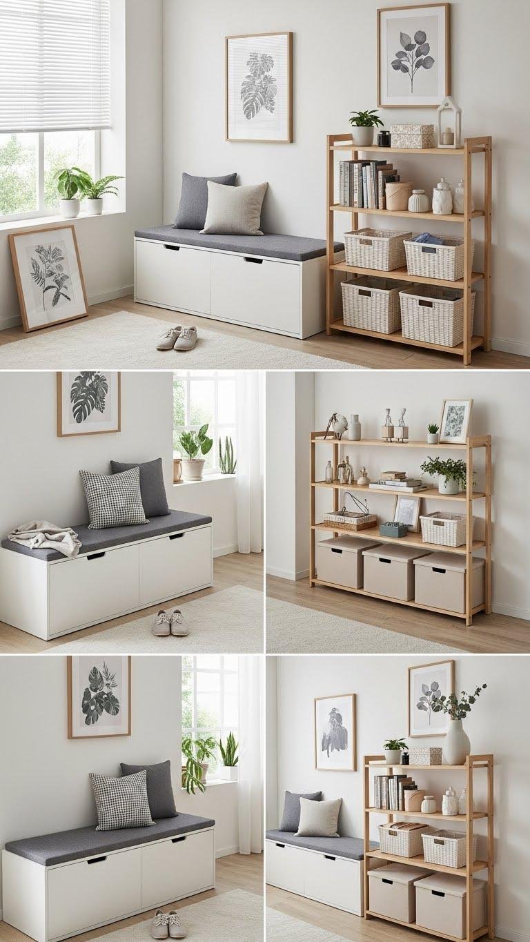 With clean lines and hidden compartments, choose storage that doubles as seating, display, or a room divider so you’ll keep the space uncluttered without sacrificing style.