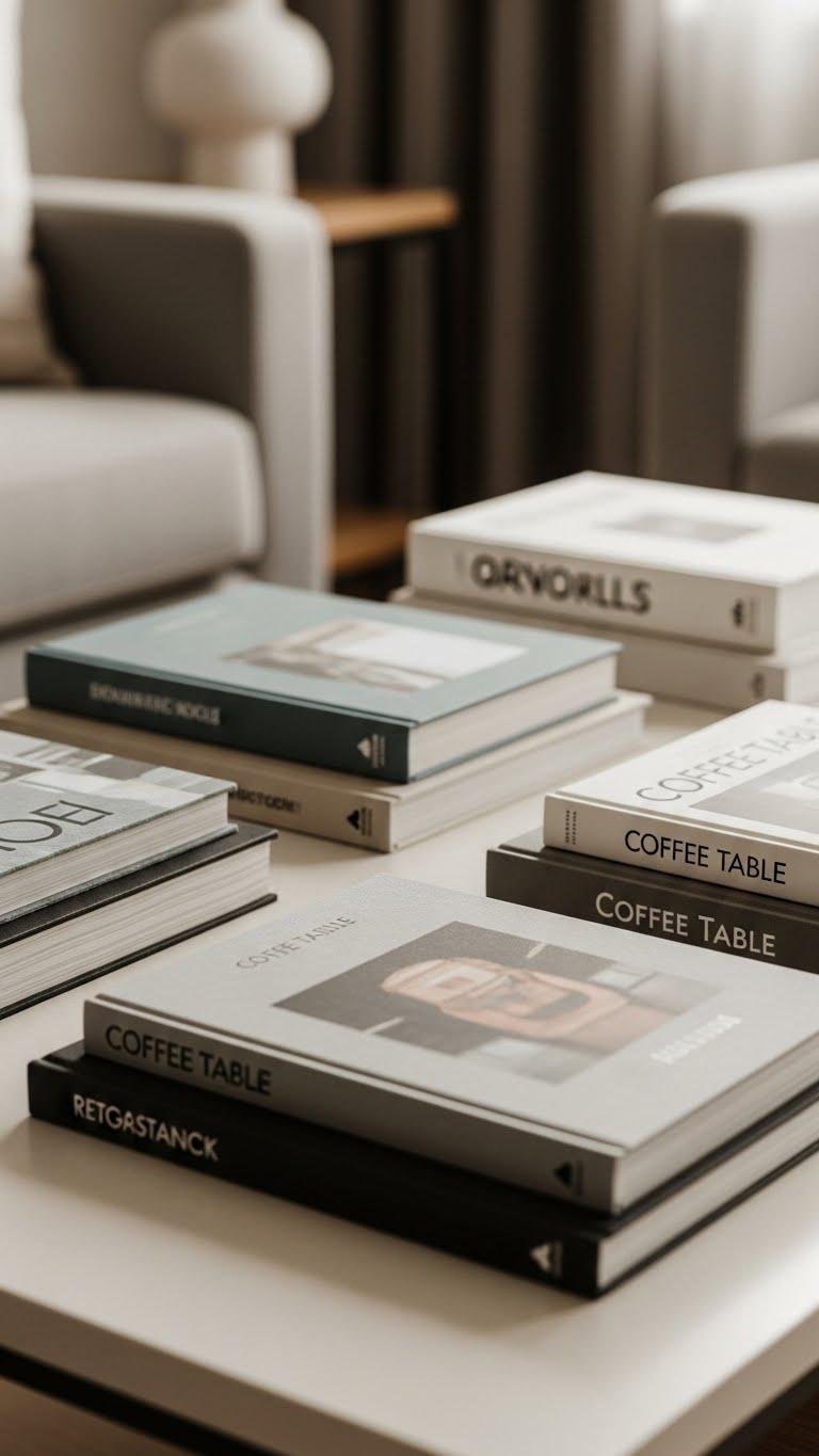 Select a few tactile, artful volumes and let them breathe — stacked low, spaced, and aligned with the room’s lines. You’ll treat the coffee table as a calm stage: mix textures, muted covers, and personal favorites so each piece feels intentional.