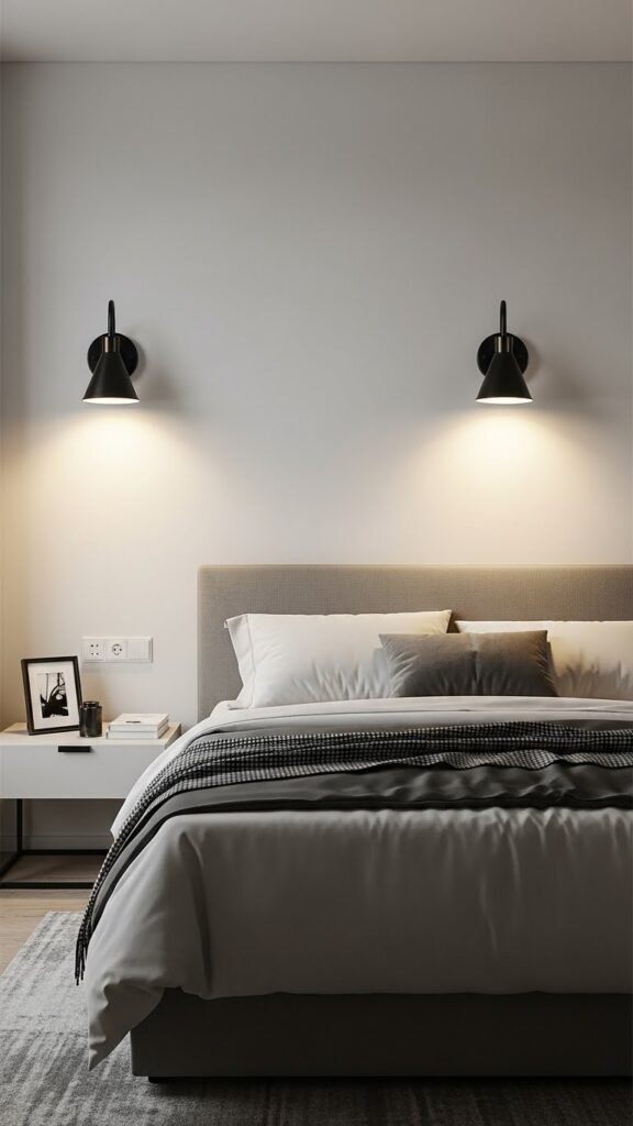 Choose a streamlined bedside sconce with dimmers to set mood and conserve energy. Opt for wireless sconces or battery powered models if you want flexible placement and no hardwiring, keeping the space airy and uncluttered.