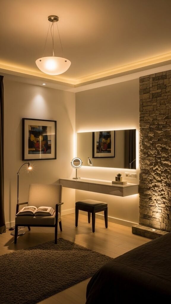 Because good lighting does more than brighten a room, plan three layers—ambient for overall warmth, task for reading or dressing, and accent to highlight art or textures—and let each take its cue from the room’s mood.