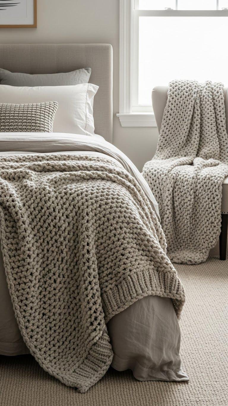 When you layer a nubby throw or chunky knit blanket across the foot of the bed or over a cozy chair, the room instantly feels tactile and lived-in. You’ll love how nubby textures add effortless contrast without clutter, inviting you to linger.