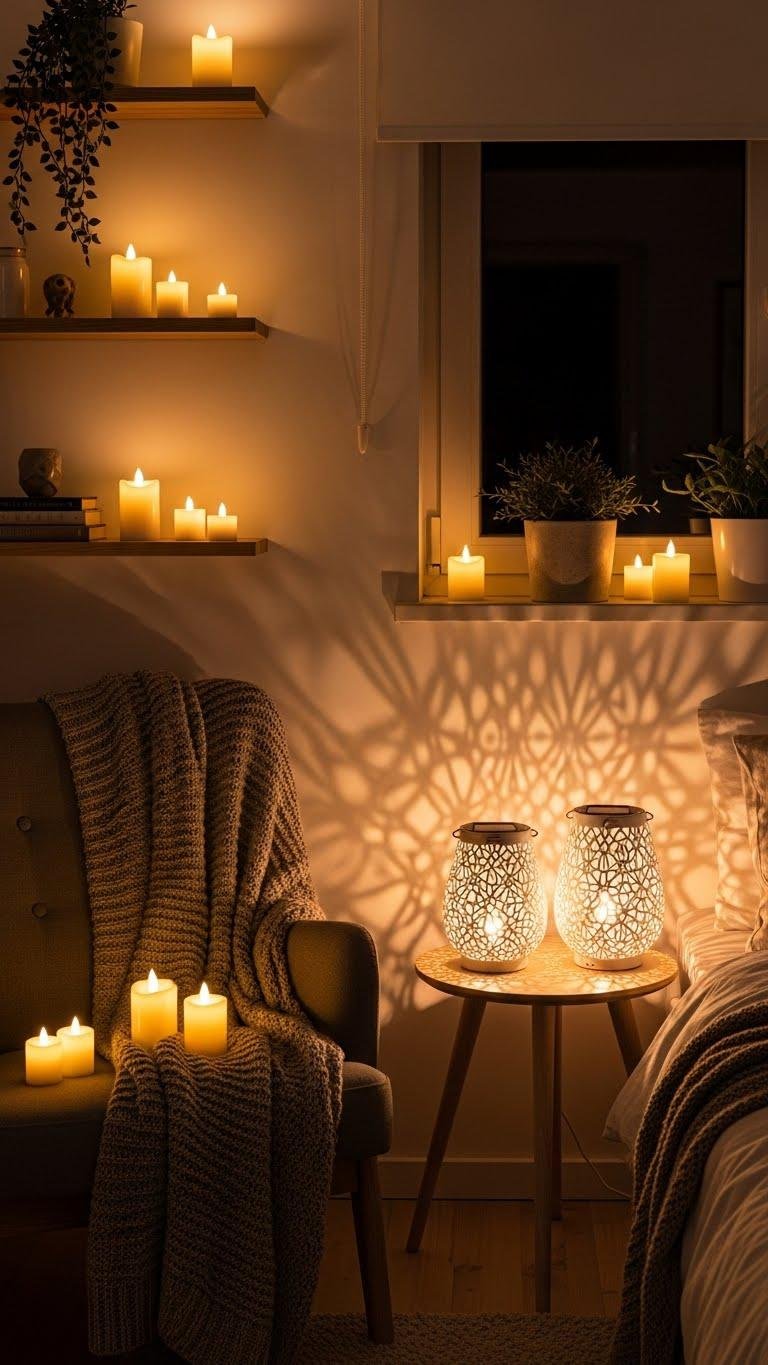 Add Flameless Candles or Lanterns for Atmospheric Light