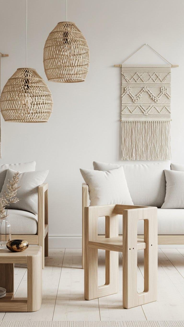 Pair with woodgrain lamps for soft glow and effortless calm.