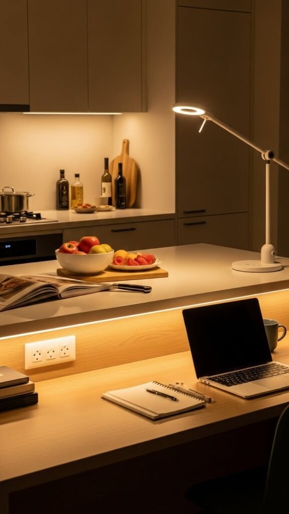 Although often overlooked, under-cabinet strip lighting instantly sharpens countertops and lifts the whole kitchen’s mood, giving you focused task light without cluttering the ceiling.