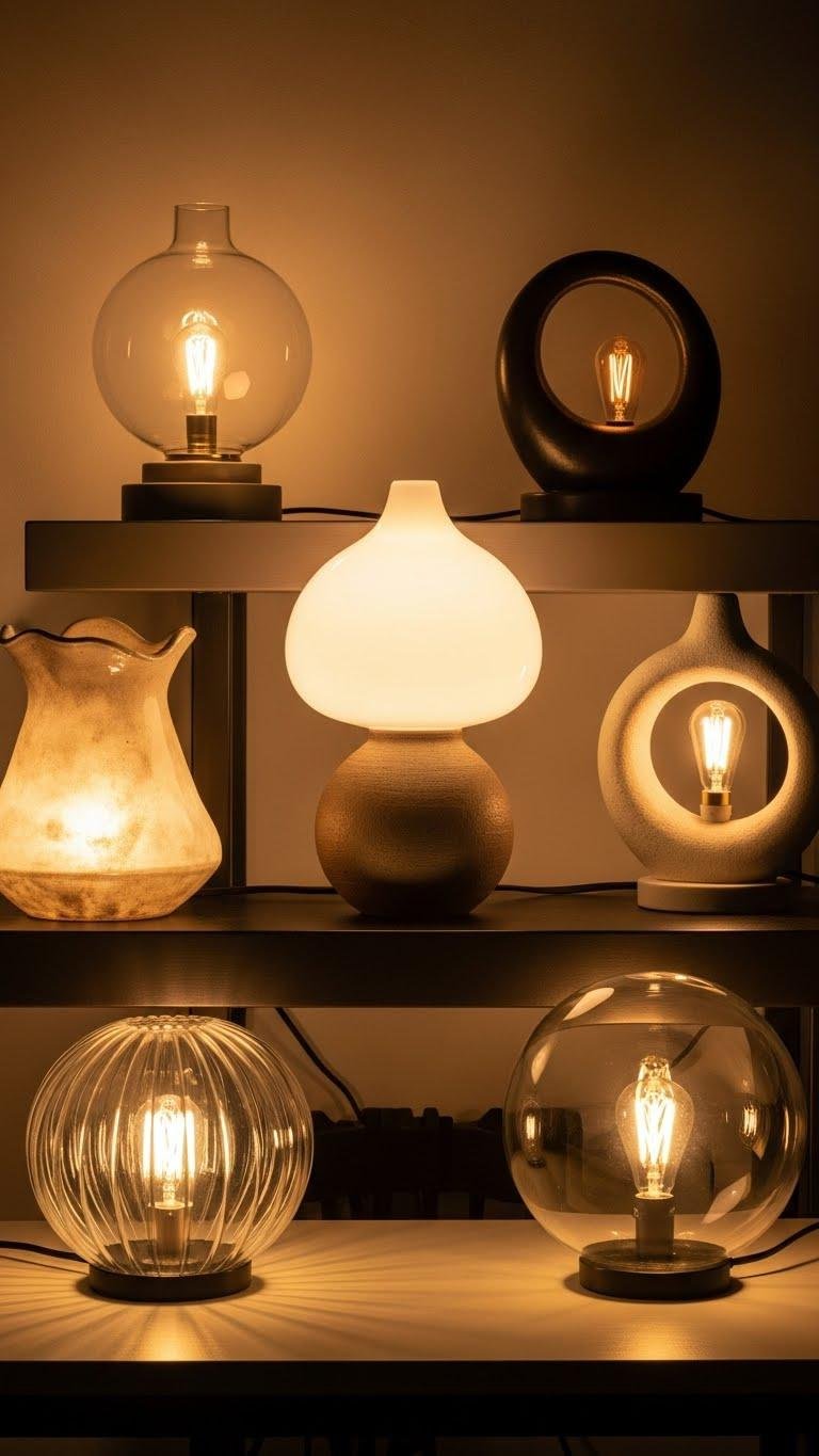 You’ll choose pieces in handbuilt ceramic or elegant blown glass that assert personality without shouting. They sculpt mood, cast directional glow, and invite touch.