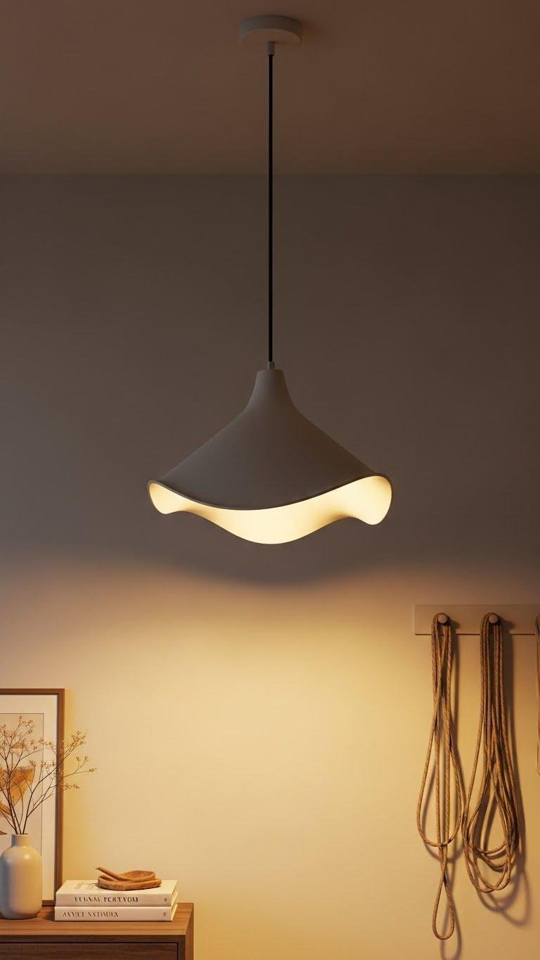 Suspended from the ceiling, a single sculptural pendant becomes your room’s focal point, casting warm pools of light and drawing the eye upward to emphasize height. Choose a piece with a clean sculptural silhouette and tactile finish; its glow anchors seating and invites relaxation.