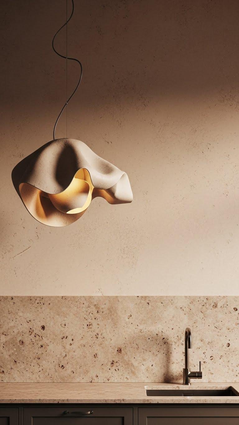 After your sculptural pendant sets the mood from above, let a textured plaster or warm paint on one wall bring the space down to human scale. Feel the subtle grit under your palm, choose plaster samples to test light and mood, and echo the texture with a textured backsplash in nearby kitchen tile. Keep tones earthy, simple, and freeing.