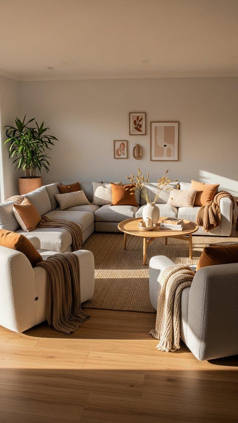 Start by choosing warm neutrals—think soft greiges, creamy beiges, and muted taupes—to give your rooms an inviting base that feels lived-in and calm.